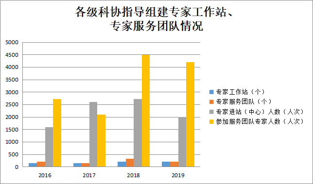 各级科协指导组建专家工作站[15]203个,全年组织进站专家1996人次。组建专家服务团队[16]203个,参加服务团队专家4198人次。