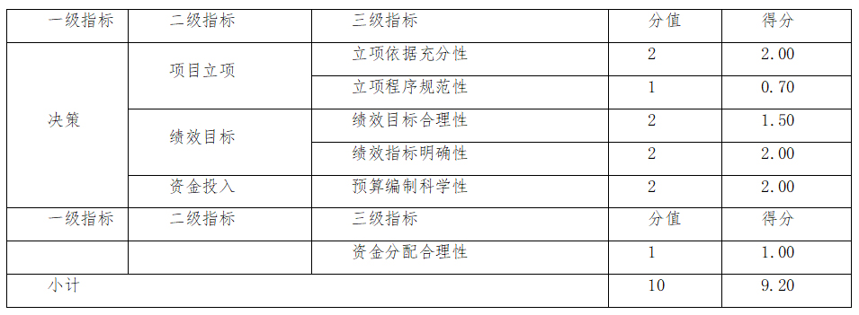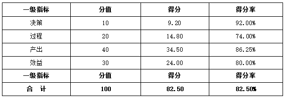 综上,该项目综合评价得分82.50分,评价等级为“良”,具体得分情况见下表。