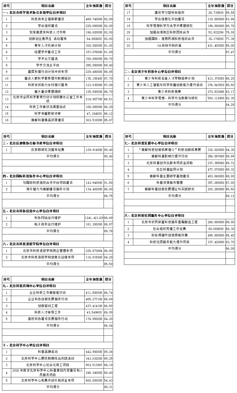 2020年度,我单位共54个项目绩效自评表纳入本决算草案,目录见下表,并将《项目支出绩效自评表》单独附表体现。