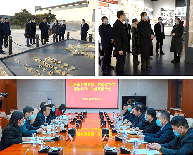 2020年12月25日,市科协党组理论学习中心组由党组书记马林同志带队赴中国人民抗日战争纪念馆开展学习调研,结合深入贯彻党的十九届五中全会精神,专题学习《论党的宣传思想工作》,研究进一步落实意识形态工作责任制,以及在新形势下做好科协宣传思想工作,加强对科技工作者政治引领的思路和举措。理论学习中心组成员集体参观了《伟大胜利 历史贡献》主题展览,并与中国人民抗日战争纪念馆党委进行了座谈交流。中国人民抗日战争纪念馆馆长罗存康从“举旗帜、育新人、展形象”三个方面介绍了抗战馆开展宣传思想和爱国主义教育的主要做法和经验。